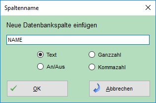 - Bei Spalte wird der Name der neuen Spalte eingetragen