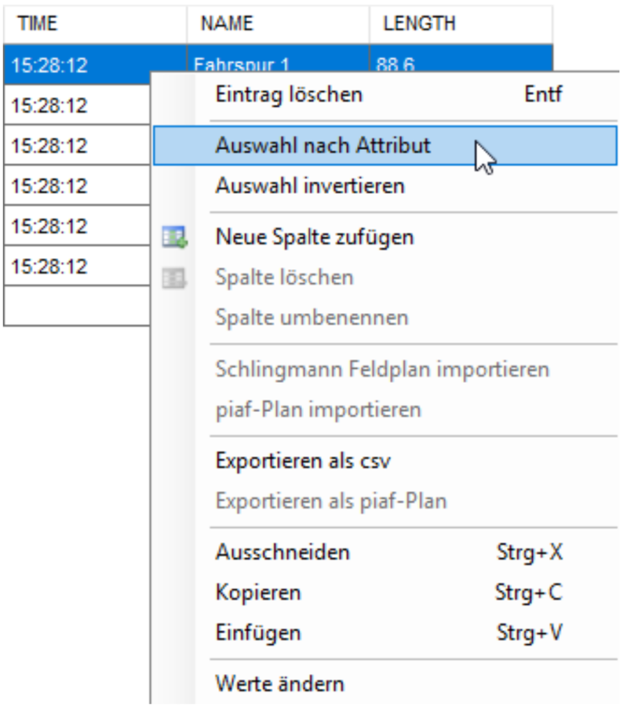 Über einen Rechtsklick in der Datenbank steht Ihnen auch die Option Auswahl nach Attribut zur Verfügung.