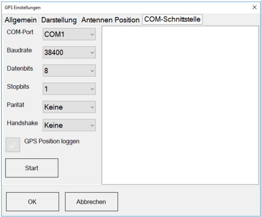 Die COM-Schnittstelle können Sie im Tab GPS → COM-Schnittstelle definieren.