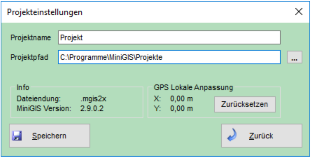 Im Menü Extras → Projekteinstellungen können projektbezogene Einstellungen verändert werden. Hier können Sie den Projektname und Projektpfad verändern.