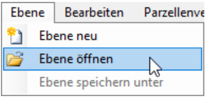 Die Menüpunkte Ebene speichern, Ebene speichern unter und Ebene schließen speichern bzw. schließen die in der Ebenenliste ausgewählte (dunkel hinterlegte) Ebene. Dazu muss die Ebene angezeigt werden, also in der Ebenenliste mit einem grünen Häkchen markiert sein.