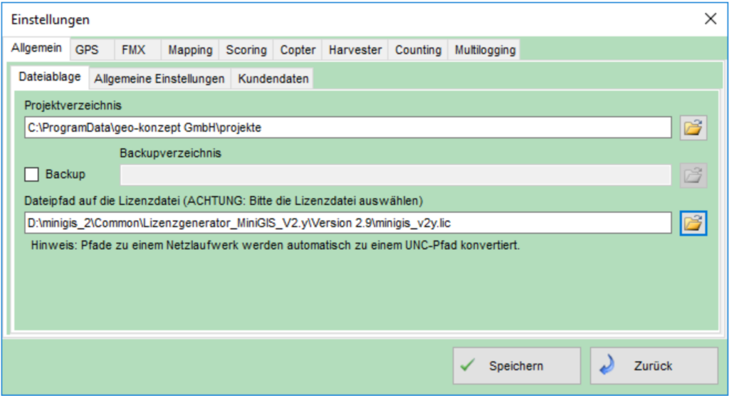 Hier kann auch der Dateipfad der Lizenzdatei festgesetzt werden.